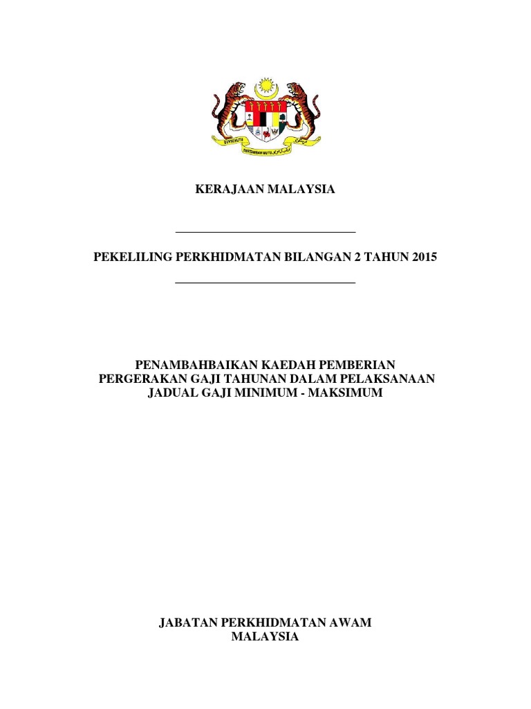 PEKELILING PERKHIDMATAN UMT BILANGAN 2 TAHUN 2015 PENAMBAHBAIKAN KAEDAH PEMBERIAN PERGERAKAN GAJI TAHUNAN DALAM PELAKSANAAN JADUAL GAJI MINIMUM - MAKSIMUM. Penambahbaikan Kaedah Pemberian Pergerakan Gaji Tahunan dalam Pelaksanaan Jadual Gaji Minimum. 22015 yang berkuat kuasa mulai 1 Januari 2015.