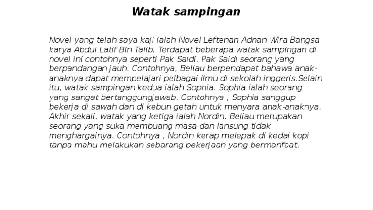 Watak baru yang khusus bagi cerita. Sinopsis Tema Persoalan Nilai Pengajaran Gaya Bahasa Plot Teknik Plot Watak dan Perwatakan Latar Tempat Latar Masa Latar Masyarakat Soalan Jawapan.